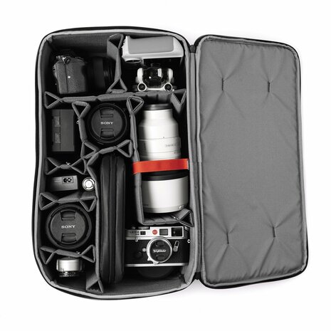 Met zijn gevoerde schuimrubberen deksel en handgrepen is de Cubik opbergoplossing verwijderbaar en herconfigureerbaar. Voor maximale flexibiliteit en gemak is de organizer voorzien van riemlussen.